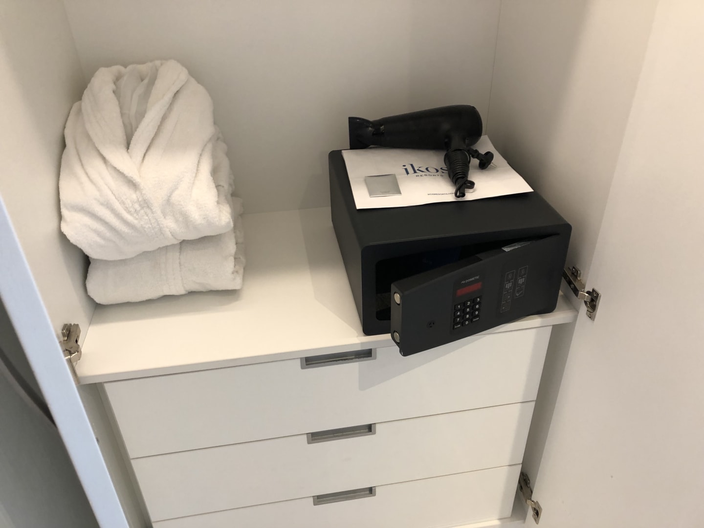 Kostenloser Safe, ausreichend groß auch für 15" Notebook.
