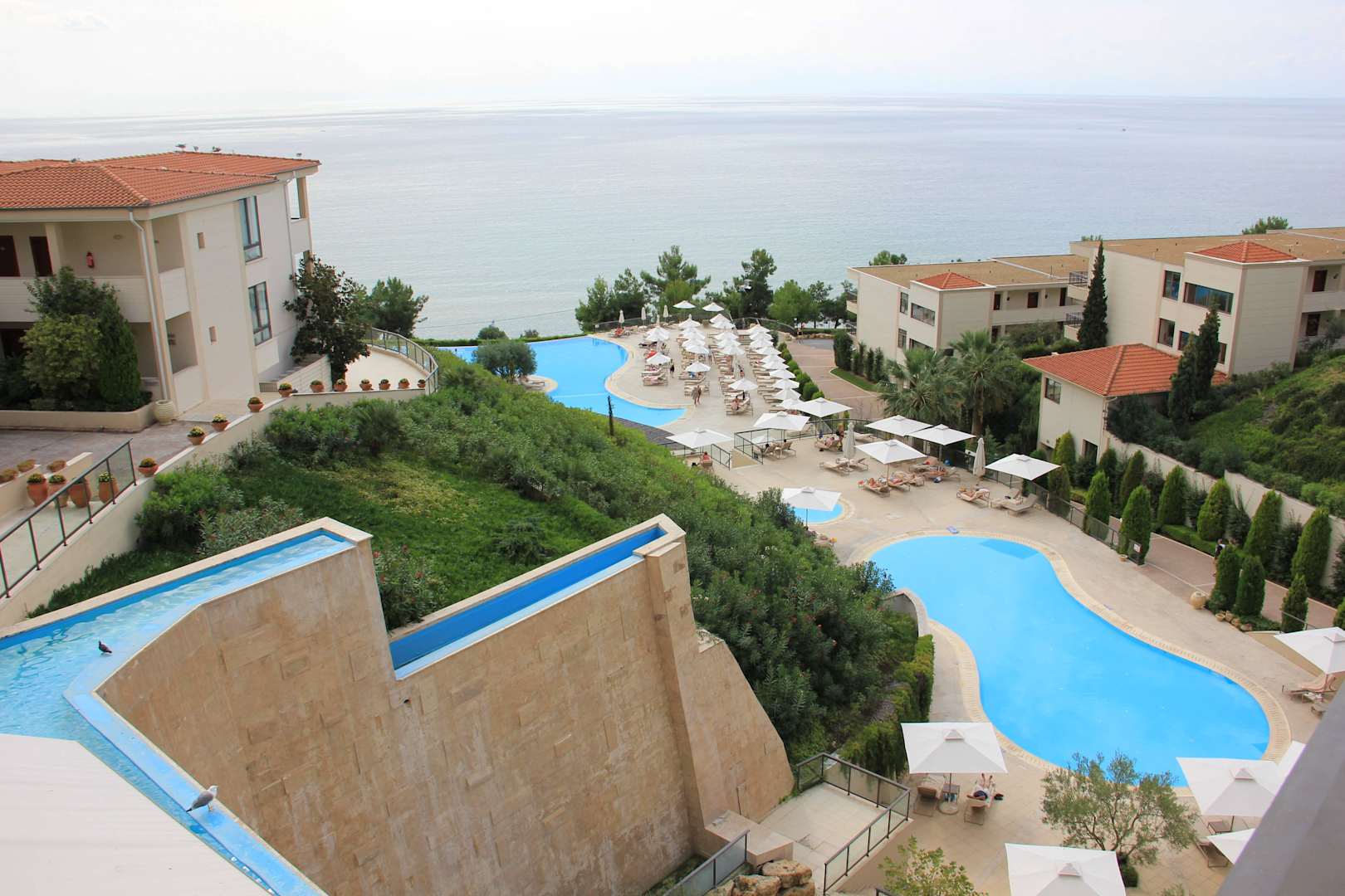 Blick vom Haupthaus zum Mainpool