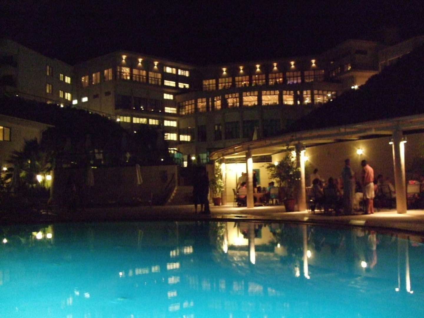 Abends vom Pool auf das Hotel