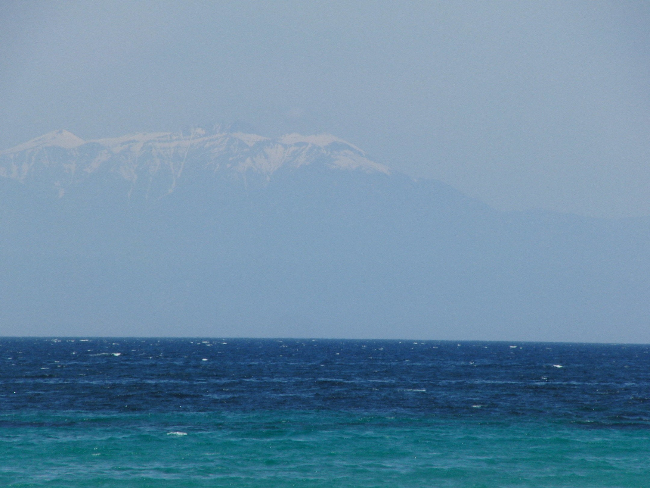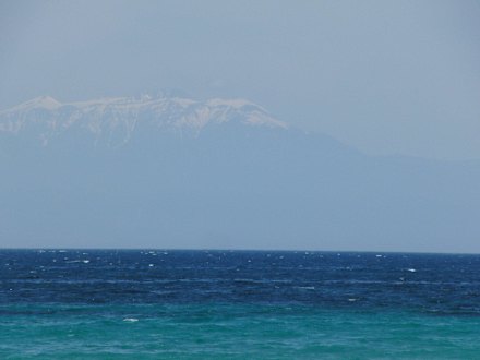 Ausblick von der Straße am Strand auf den Olymp