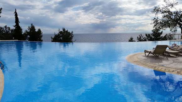 Blick am Pool auf das Meer