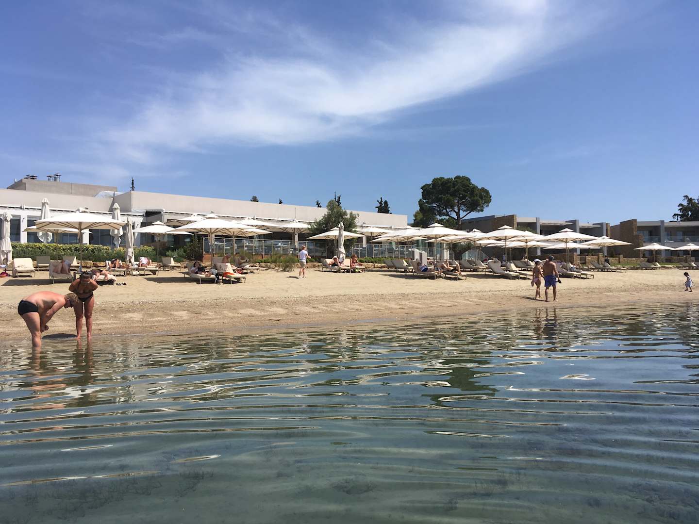 Blick auf einen Teil des Strans und Restaurant und Bar