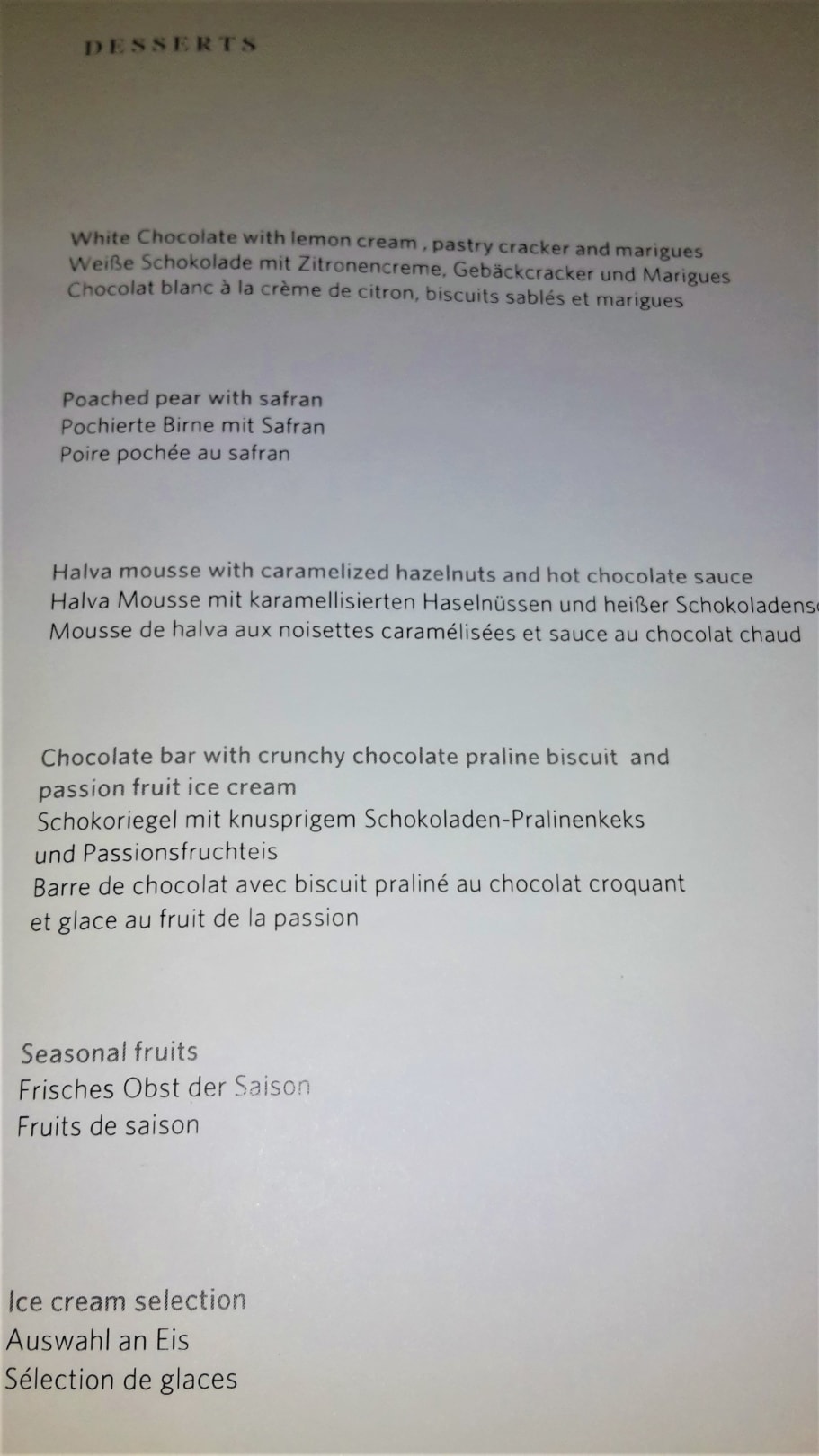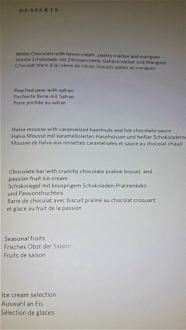 Dessertkarte im "Ouzo"