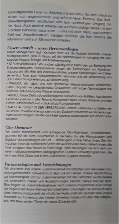 Umweltpolitik der Ikoskette z.B. werden Handtücher werden tatsächlich nur gewechselt, wenn mann dies wünscht. Röhrchen sind aus Bambus (?) mit Papier umwickelt.