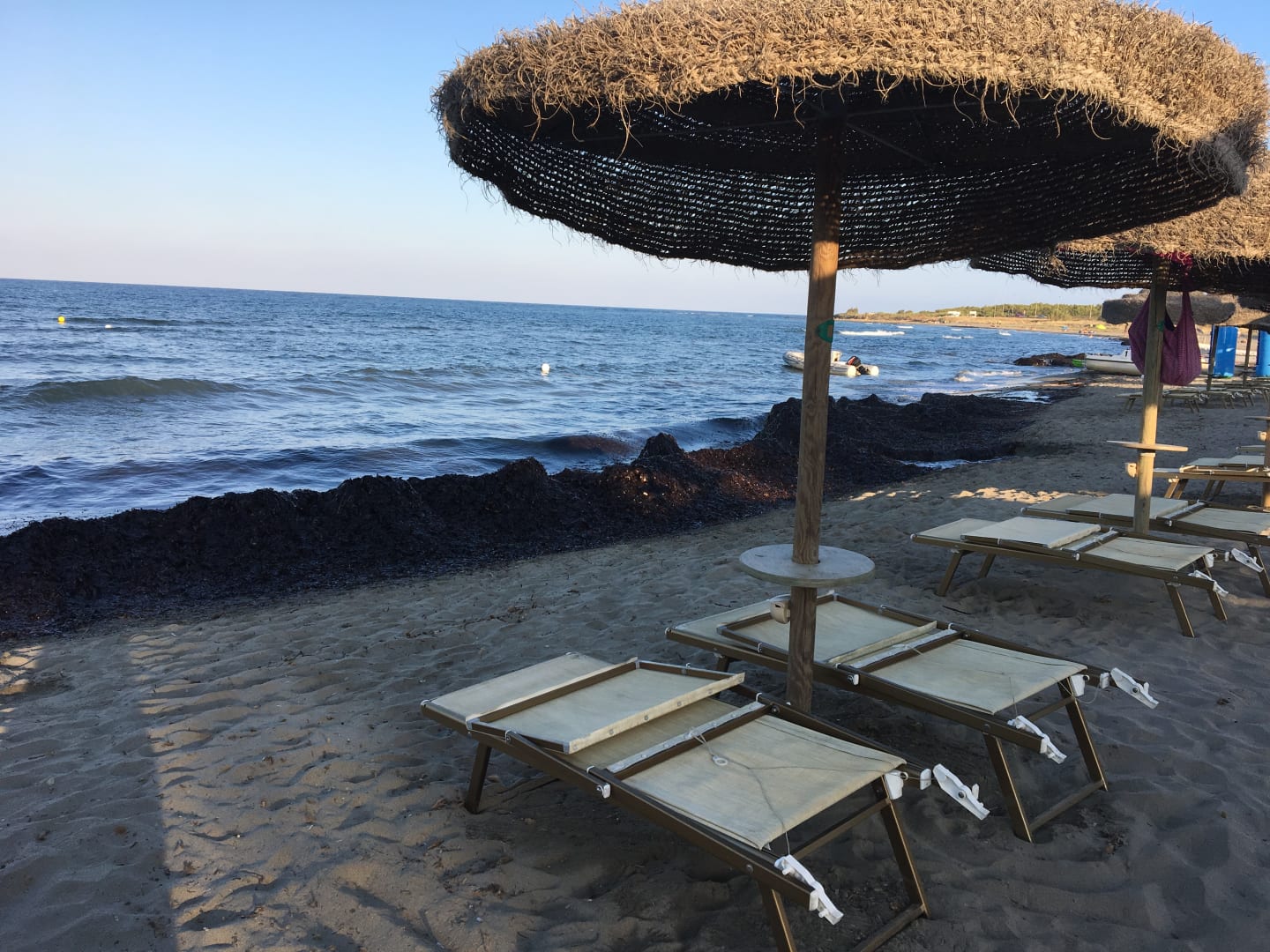 Aufgetürmte Flusen/abgestorbene Algen am Strand