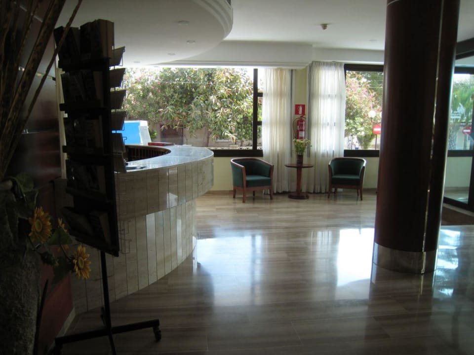 aus dem Aufzug kommend ist links die Rezeption zu sehen, rechts wäre die Bar