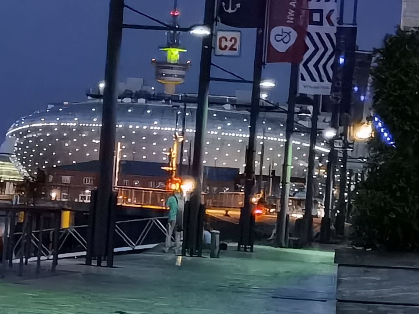 Das Klimahaus bei Nacht, aufgenommen vor der Zimmertür