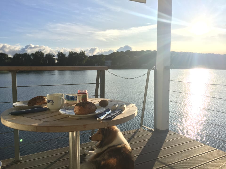 Frühstück auf der Terasse - die Brötchen hängen morgens frisch an der Haustür