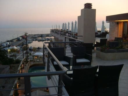 Widok na morze z przepięknej restauracji na dachu hotelu