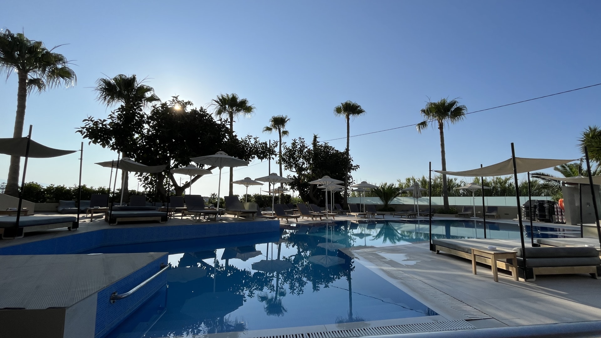 Kleiner sauberer Pool mit kostenlosen Liegen