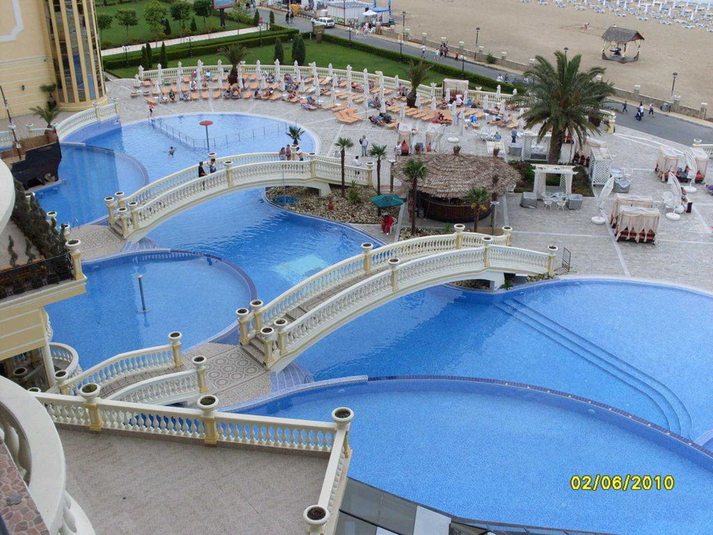 Ausblick auf den Pool mit 2 Brücken
