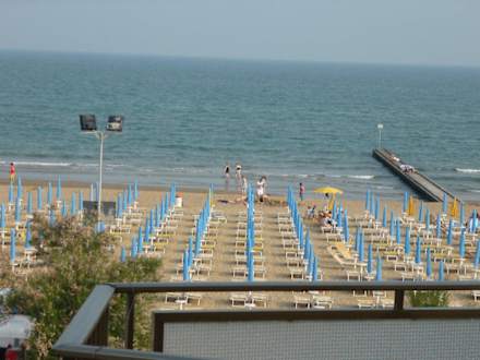 Blick vom Balkon zum reservierten Strandabschnitt