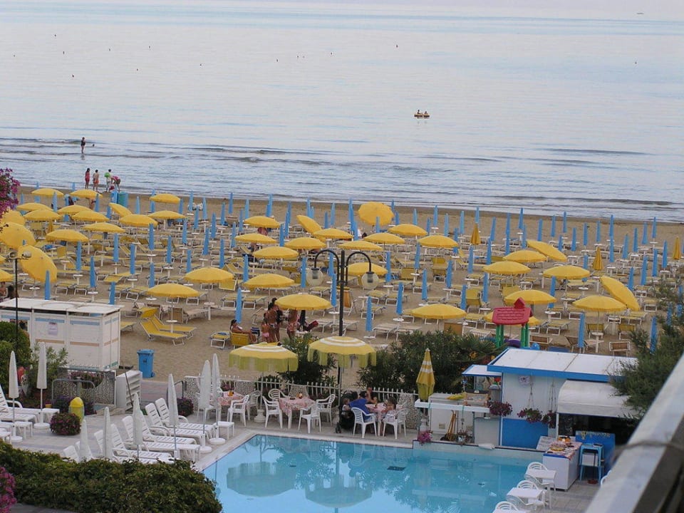 Ausblick vom Balkon zum Nachbarpool und Strand