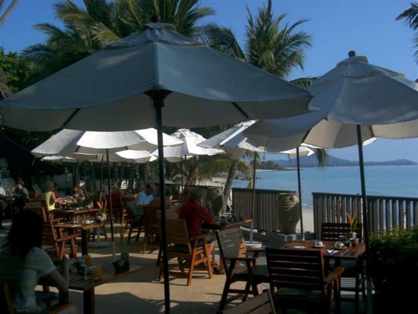 Die Frühstücksterrasse direkt am Strand