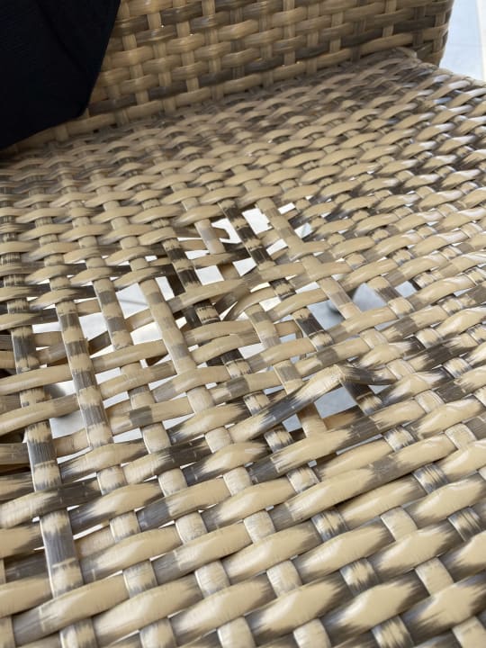 Viele beschädigte Stühle am Pool