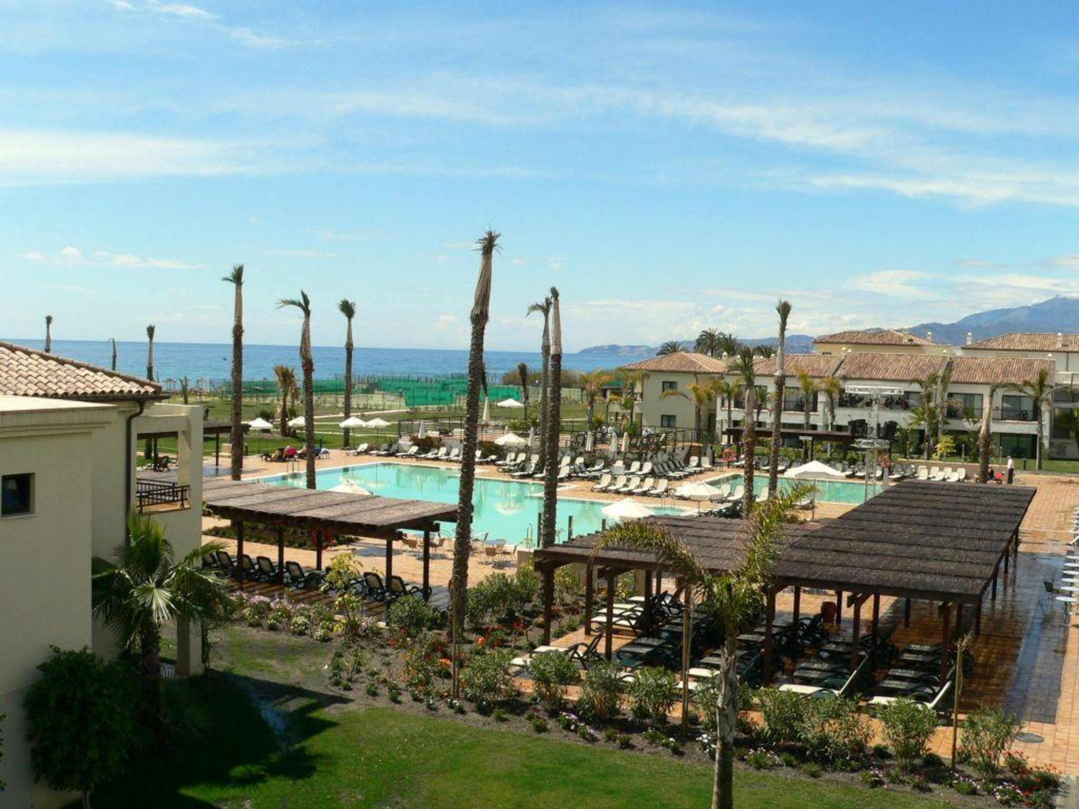 Pool mit GartenSchöner Ausblick vom Block Granada ( Zimmer mit Meerblick ) Richtung Pool und Meer.