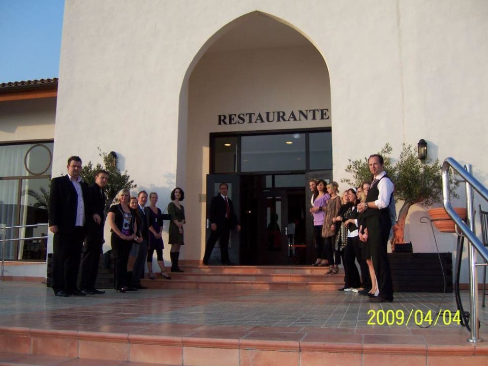 Eingang zum Restaurant Das Robinson-Team begrüßt die Gäste vor dem Restaurant