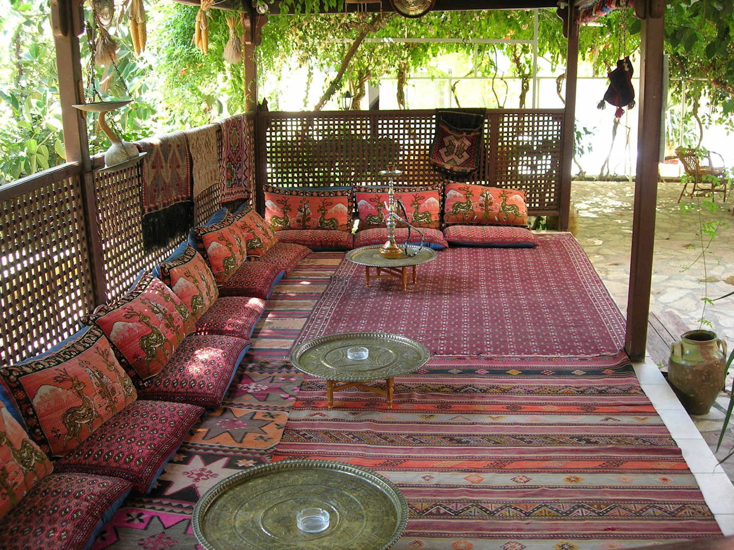 Orientalische SitzeckeEine orietalische Sitzecke lädt zum Verweilen ein. Die Liebe zum Detail findet sich hier, wie auf der ganzen Anlage, wieder.