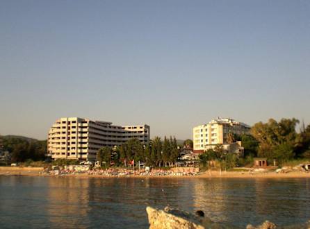 Blick auf den Strand und HotelBlick auf den Strand und Hotel und das neue Hotel.....rechts das kleine, ist das Aska Baran!