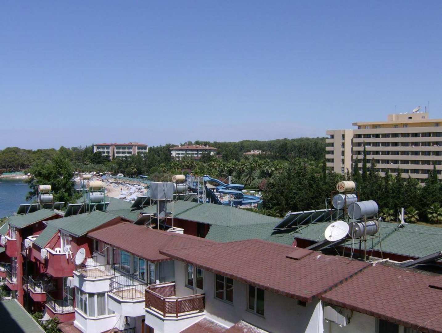 Ausblick vom BalkonIm Hintergrund (gelber "Kasten") das Özkaymak
