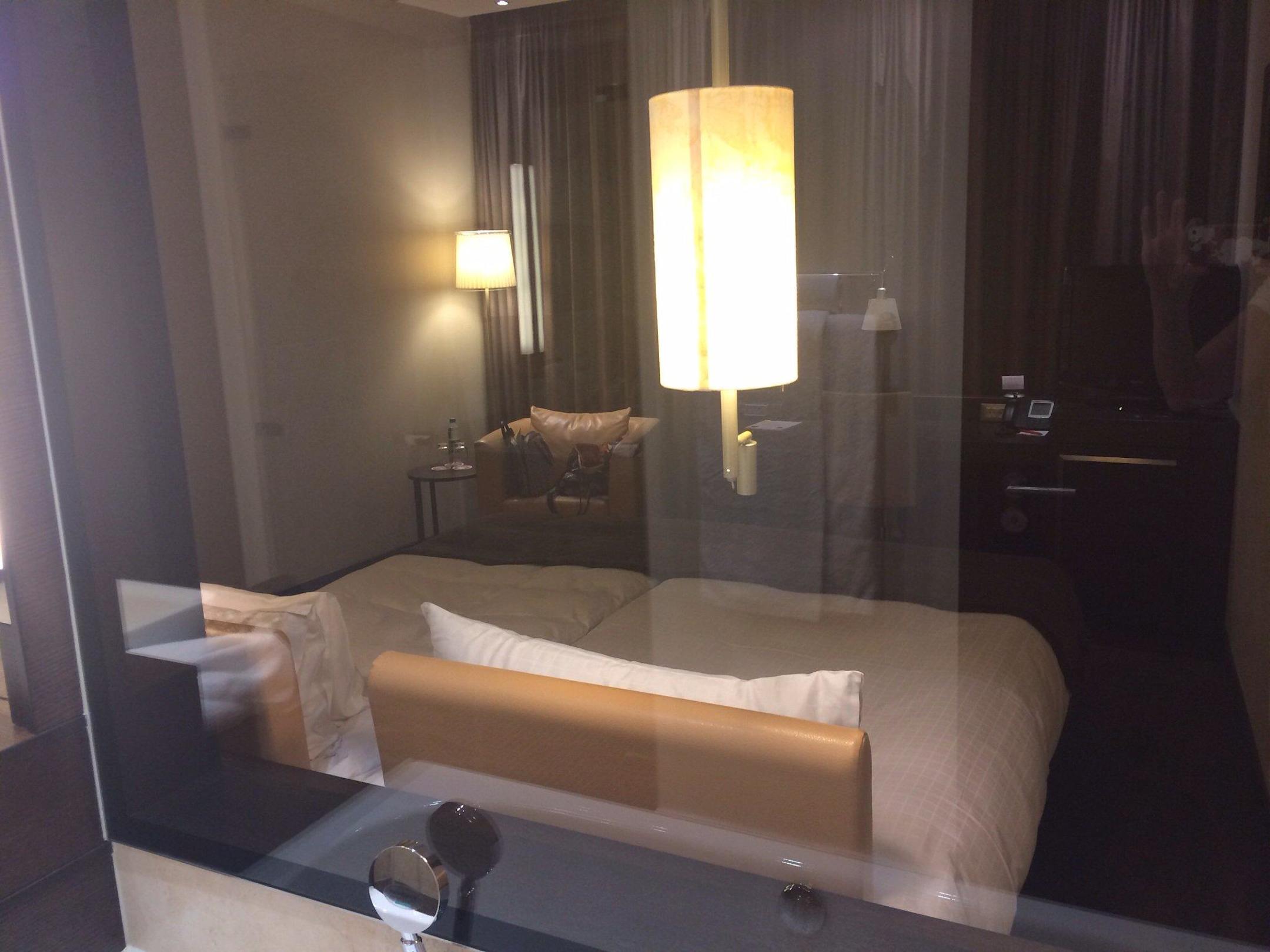 Blick aus dem Bad ins Zimmer