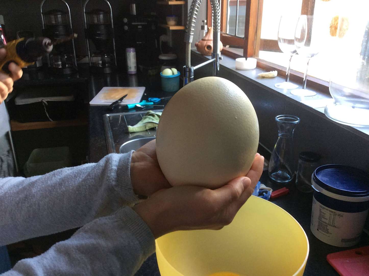Beim Frühstück überraschten uns Ines und Fred mit einem Straußenei.