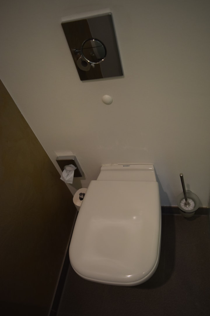 WC im Badezimmer. Hinter einer separaten Glastür versteckt.