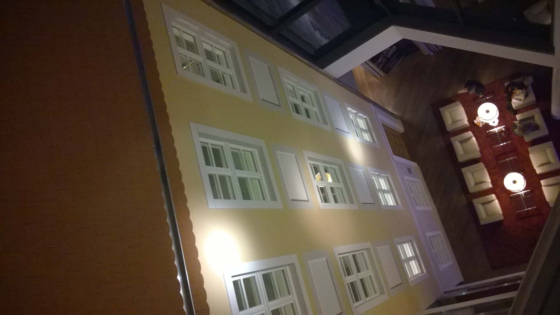 Innenfassade mit Sitzbereich der Lobby aus dem 5. OG aus gesehen