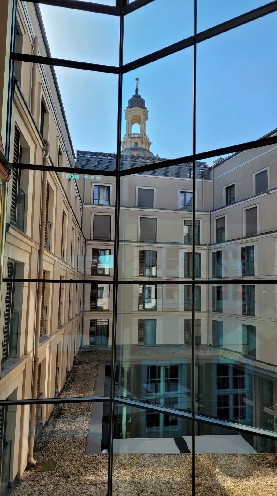 Ausblick in den Innenhof vom Flur aus