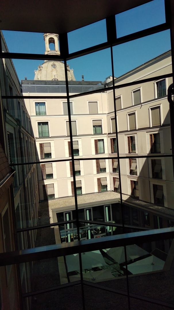 Blick in den Innenhof, hinten Turm der Frauenkirche.