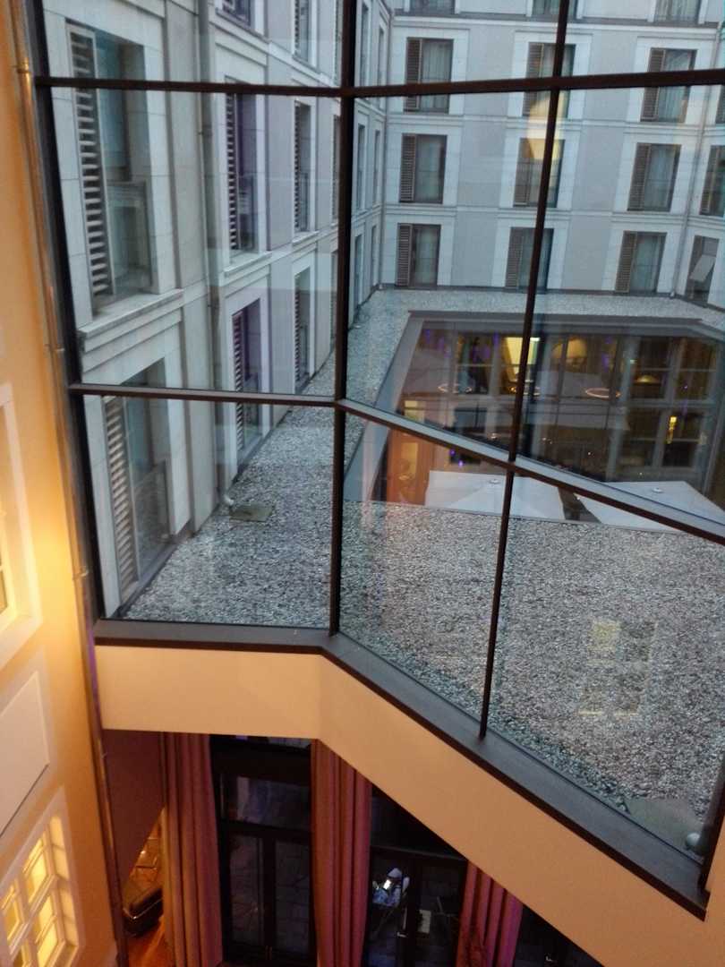 Im Aufzugsbereich, unten ist die Lobby sichtbar