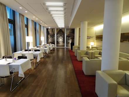 Mischung aus Lobby und Speisesaal im Hotel Innside Dresden