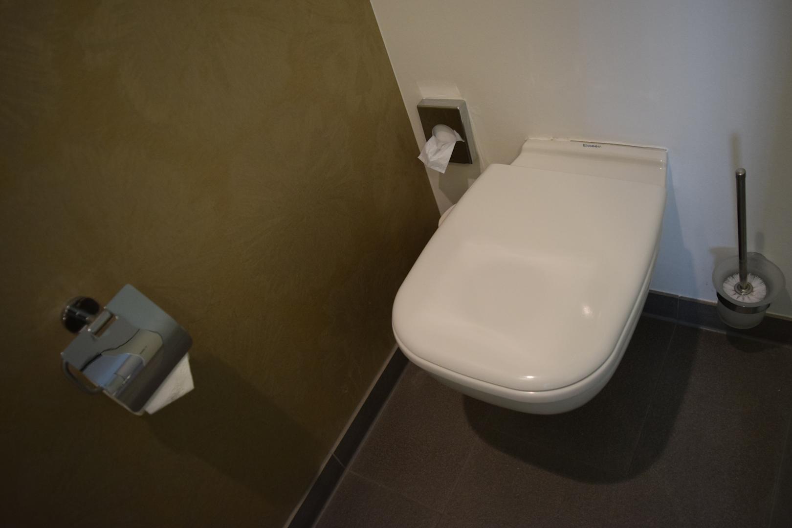 WC im Badezimmer. Hinter einer separaten Glastür versteckt.
