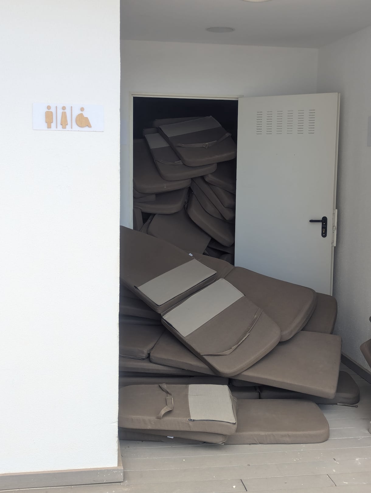 Wegen Gewitter würden die Auflagen der liegen in der Toilette am Boden gelagert 🤮