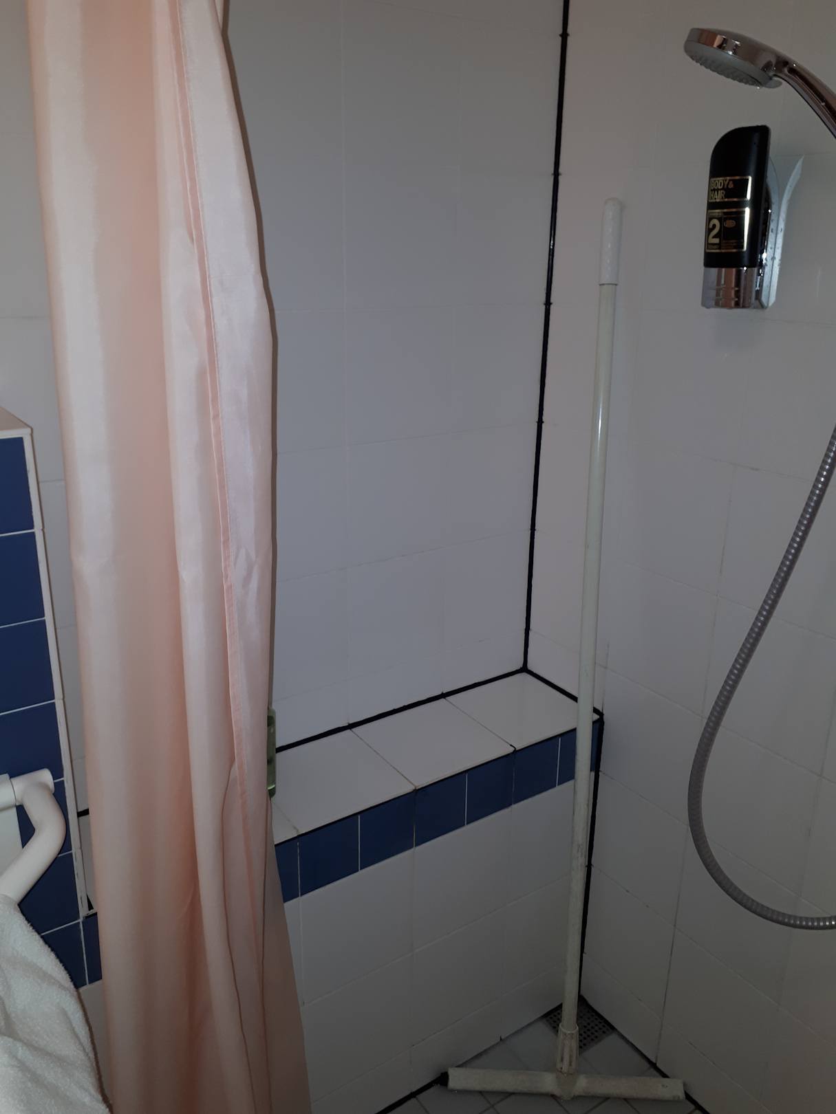 Behindertendusche. Hier wird dann bei Benutzung das Zimmer geflutet.