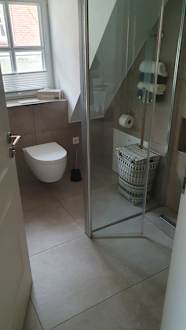 Das sehr hochwertig ausgestattete Bad.