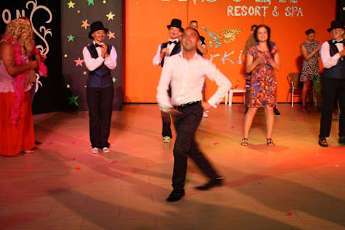 Chefanimateur, rechts daneben Kinderanimateurin