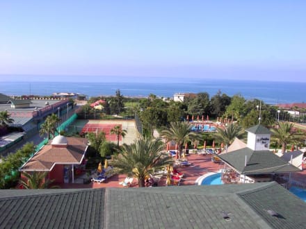 Blick aus dem Zimmer über die Anlage zum Meer