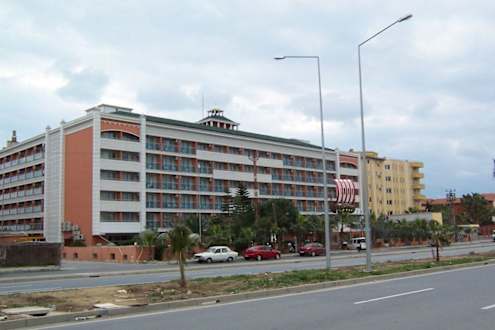 Hier sieht man das Hotel von der anderen Straßenseite aus.