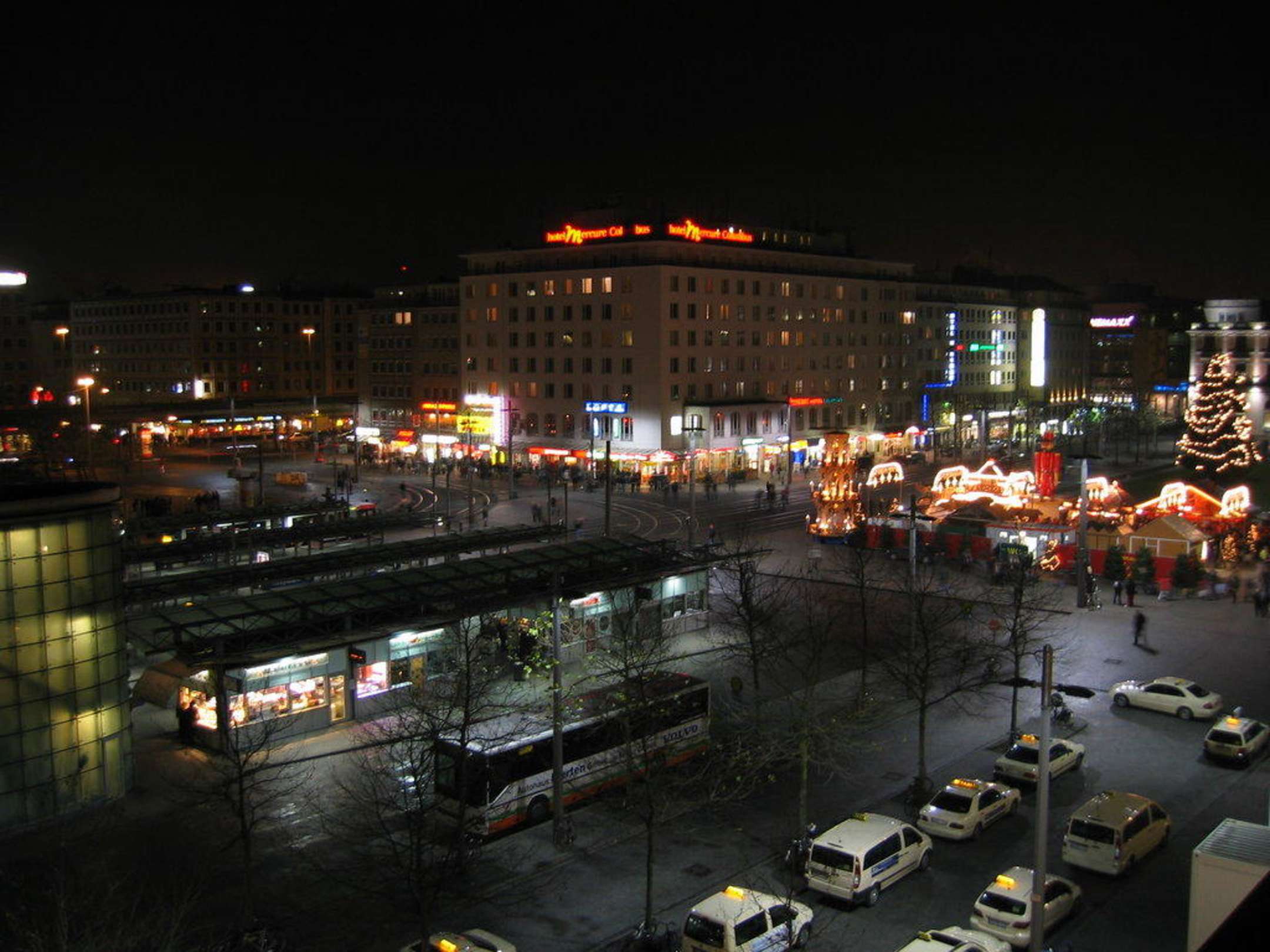 Ausblick zum Bahnhofsvorplatz während der Weihnachtszeit