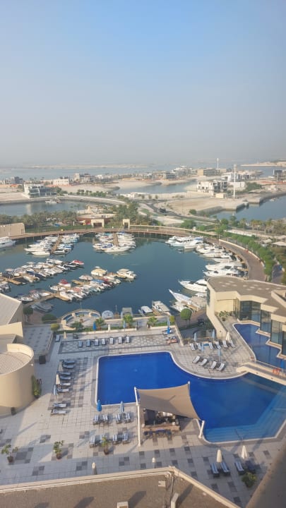 Ausblick aus einem Zimmer im 15. Stock auf den Pool und den Marina-Bereich