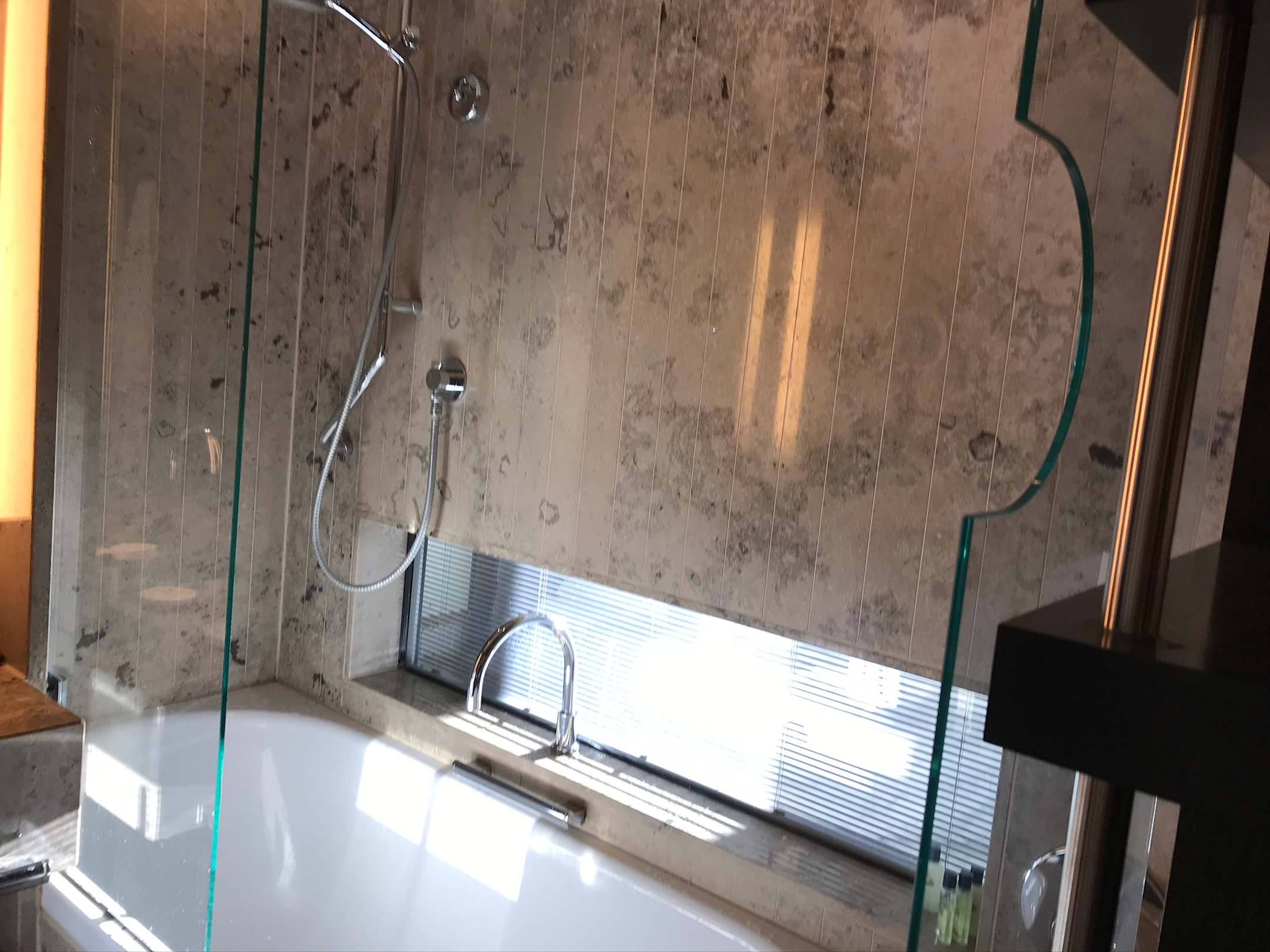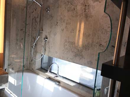 Duschwanne mit Fenster zum Zimmer