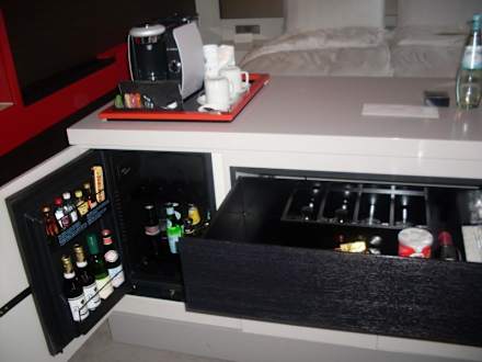 Minibar und Tassimo-Maschine.