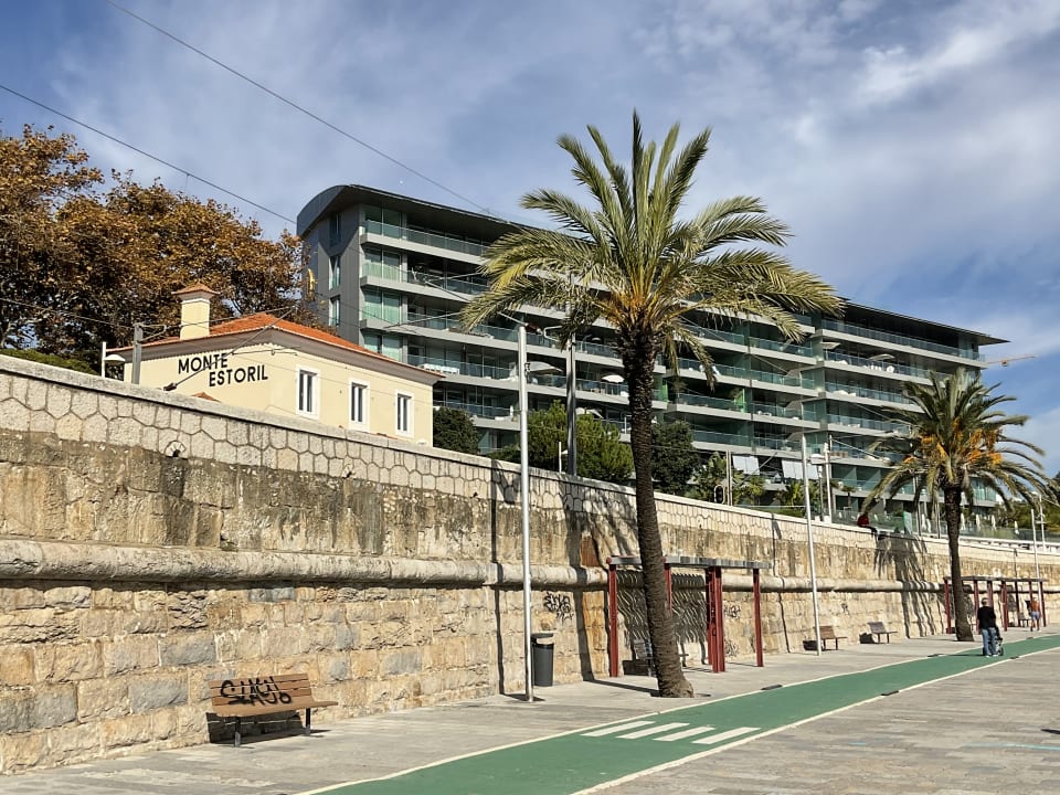 Hotel an der Promenade von Estoril. Vor dem Hotel verläuft die Bahnlinie von Lissabon nach Cascais, hinter dem Hotel die vielbefahrene Küstenstraße.