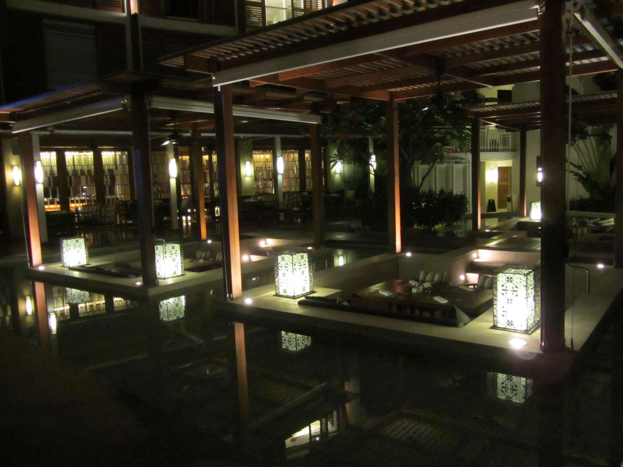 Hotelrestaurant bei Nacht