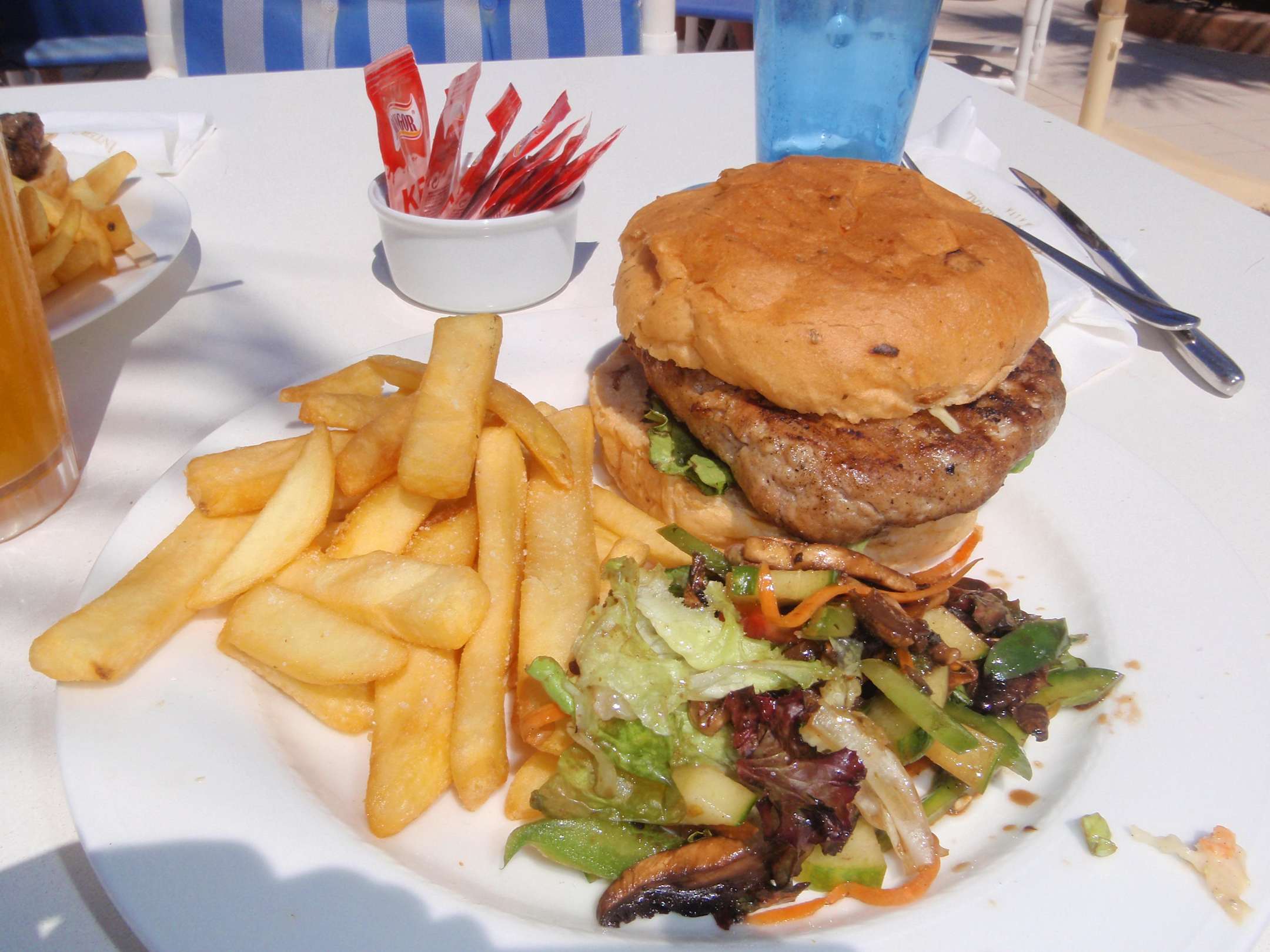 Steakburger, an der Poolbar