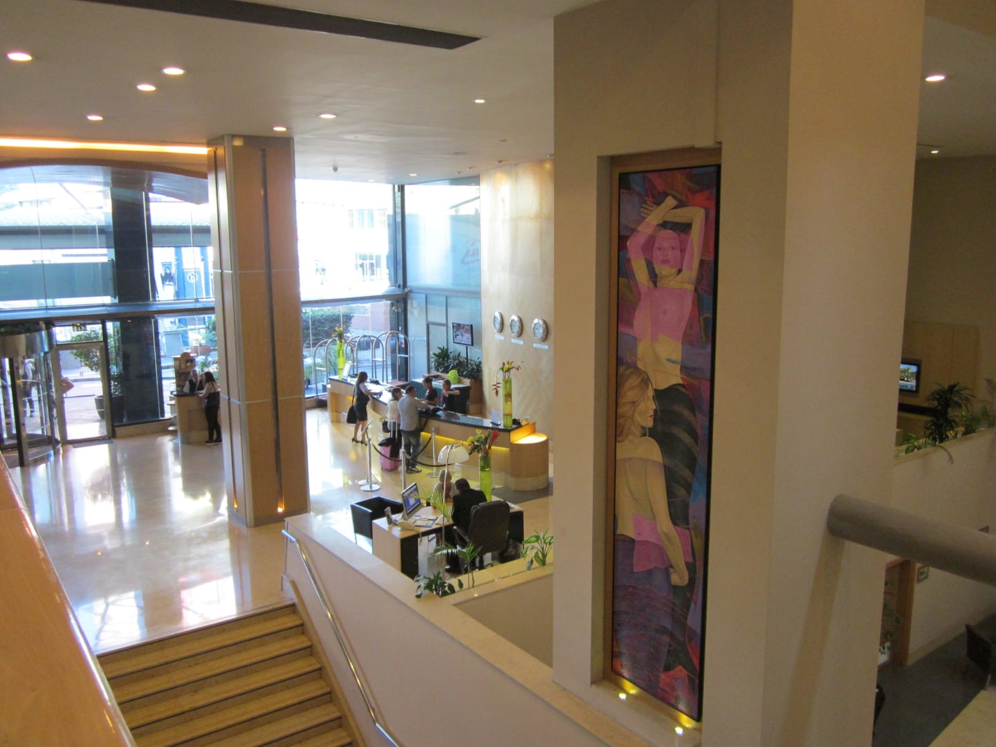 Im Hintergrund der Eingang, rechts die Rezeption