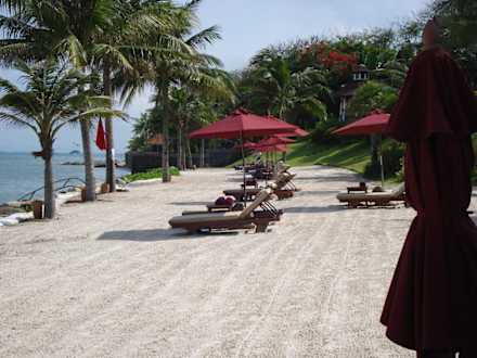 StrandDer (aufgeschüttete) Hotelstrand - schön zum Liegen. Gebadet wird eher im Pool