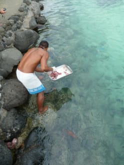Füttern der Fische im "Lagoonarium"