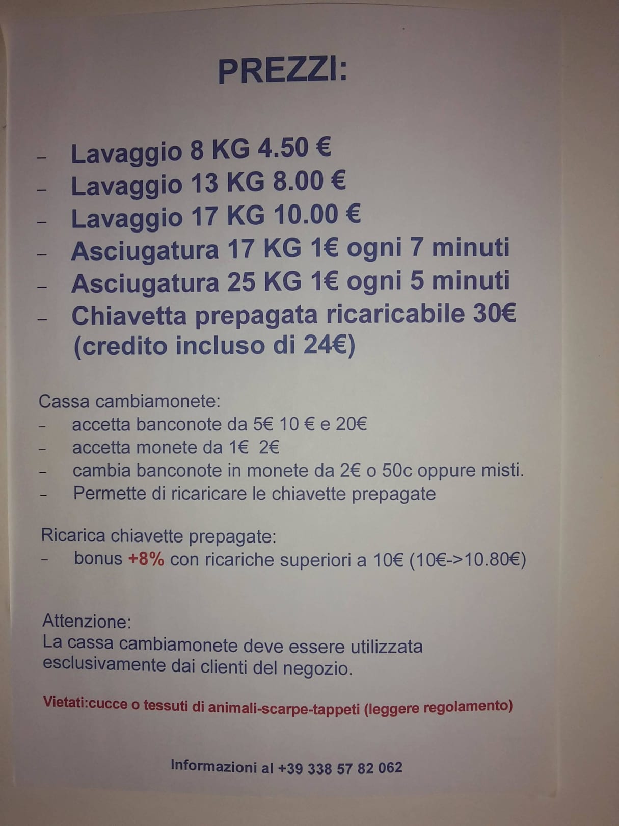 Preisliste Wäscherei Via Prati 42